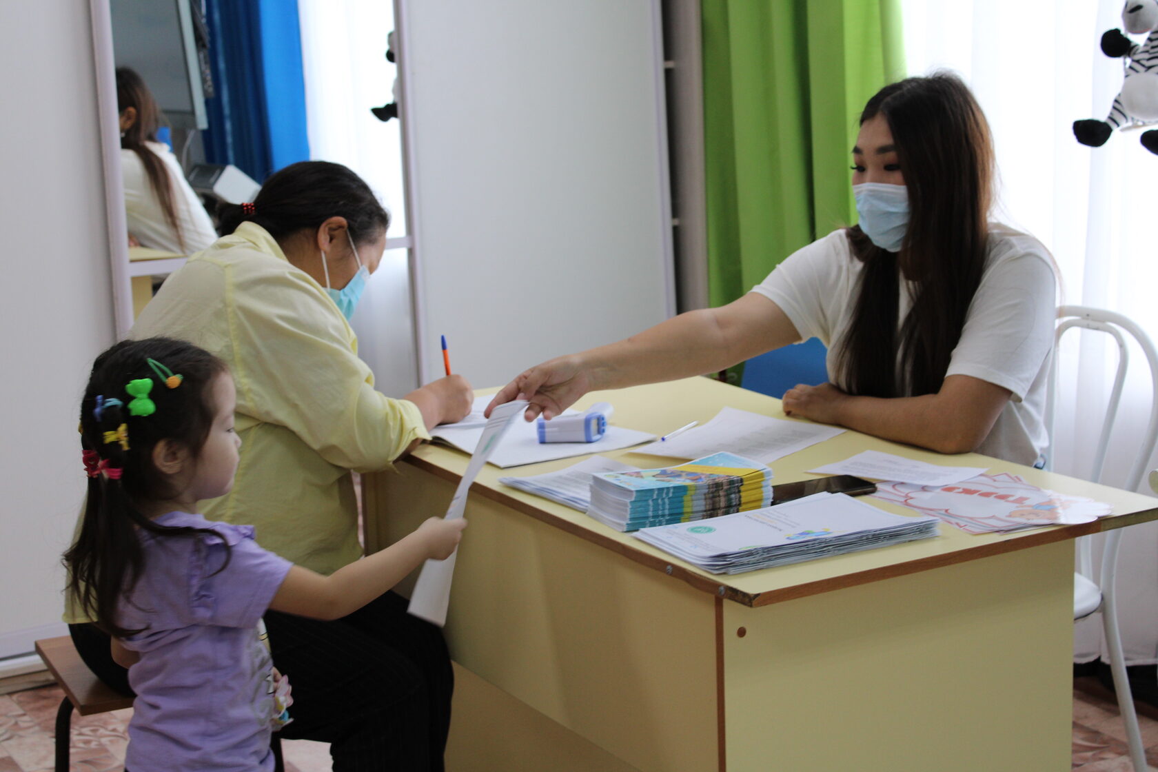 Учитель – логопед провела логопедическую диагностику «Уникум» с применением современных технологий, логопед-дефектолог -дефектологическое пробное занятие «Погрузись вместе со мной», направленное на стимуляцию вербальных и невербальных коммуникаций детей и показала родителям как правильно делать массаж языка и щек, психолог провела психологическую диагностику, также показа нейропсихологические упражнения «Брейн». Тьюторы провели монтессори-терапию, инструктор по ЛФК применил в диагностике свою авторскую методику экспресс-анализа стопы и авторский тренажер «Тардыс». Во время ожидания для родителей и детей были открыты группы «Кунчээн», «Кустук» и «Чуораанчык», где детишки играли на интерактивном поле, мобильном классе.